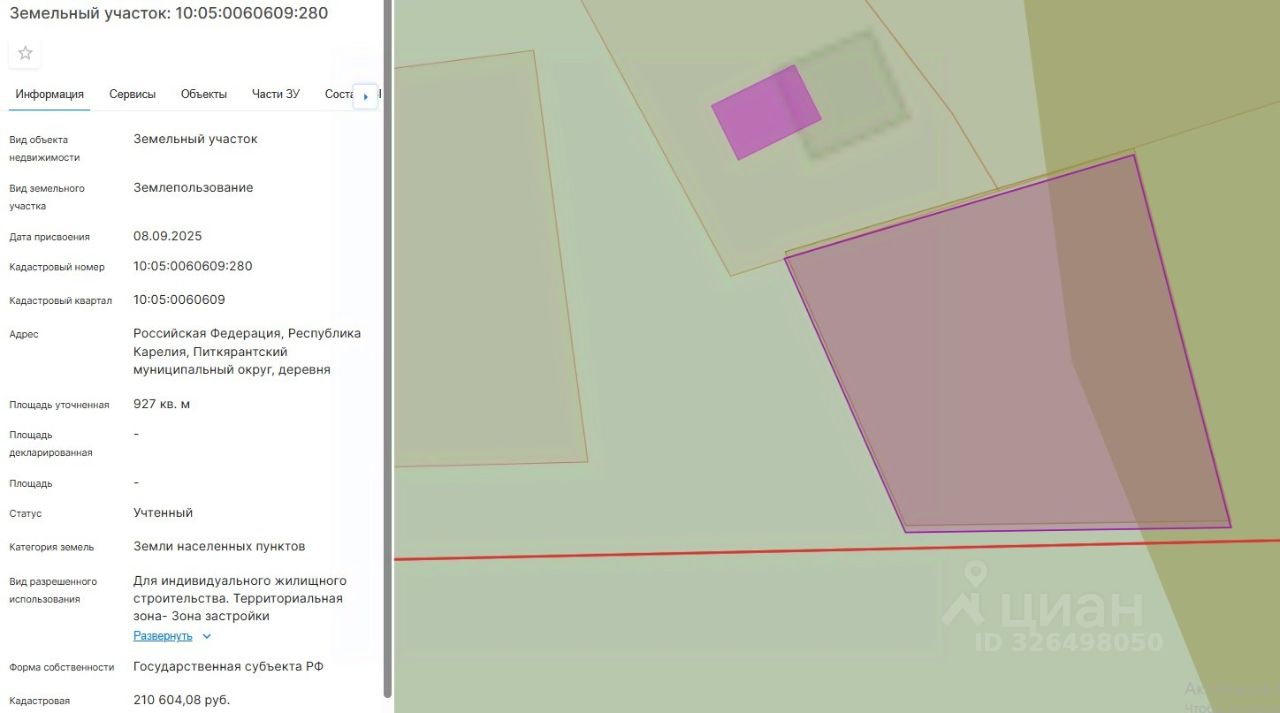 Площадь 927 кв.м, местоположение: Российская Федерация, Республика Карелия, Питкярантский муниципальный округ, деревня Ууксу, вид разрешенного использования Для индивидуального жилищного строительства. Территориальная зона - Зона застройки индивидуальными жилыми домами (Ж-1).