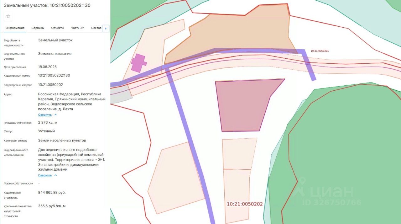 Право заключения договора аренды земельного участка из земель населенных пунктов, имеющего кадастровый номер 10:21:0050202:130, площадью 2376 кв. м, местоположение: Российская Федерация, Республика Карелия, Пряжинский муниципальный район, Ведлозерское сельское поселение, д. Лахта, вид разрешенного использования "Для ведения личного подсобного хозяйства (приусадебный земельный участок). Территориальная зона - Ж-1. Зона застройки индивидуальными жилыми домами".