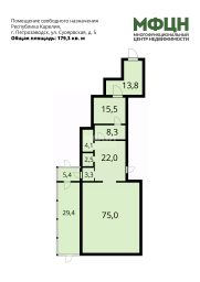 Общая площадь помещения: 179, 3 кв. м.