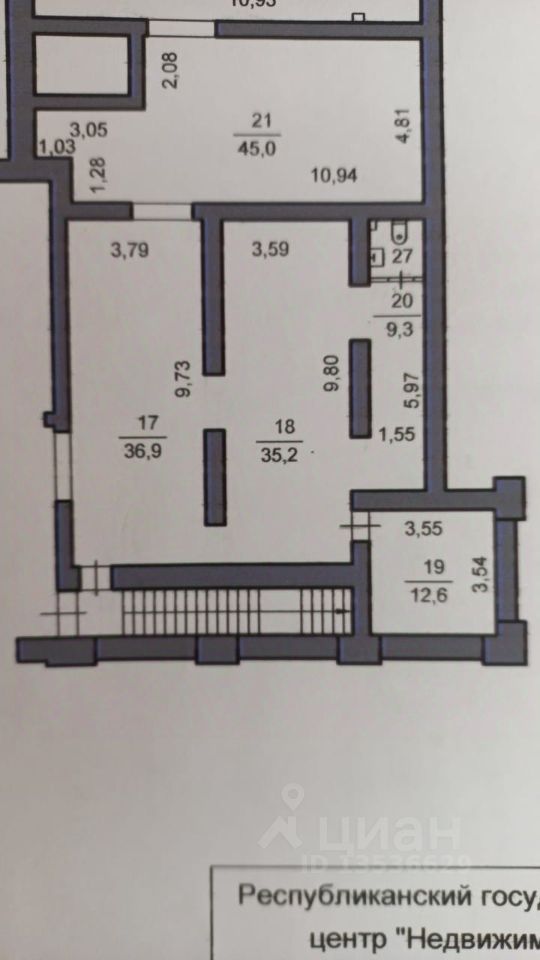 В данный момент свободно лдно помещение: проходное 35кв.м.