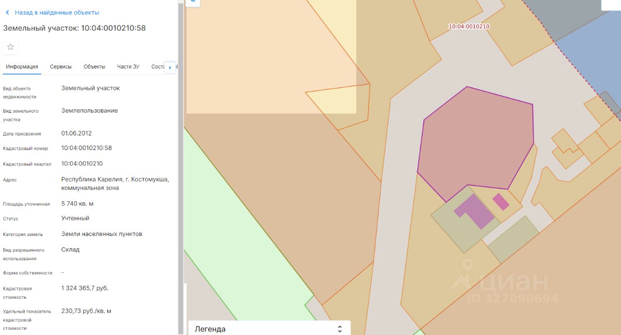 Право заключения договора аренды земельного участка из земель населенных пунктов, имеющего кадастровый номер 10:04:0010210:58, площадью 5740 кв.м, местоположение: Республика Карелия, г. Костомукша, вид разрешенного использования "Склад". Территориальная зона Производственная зона (Пк1).