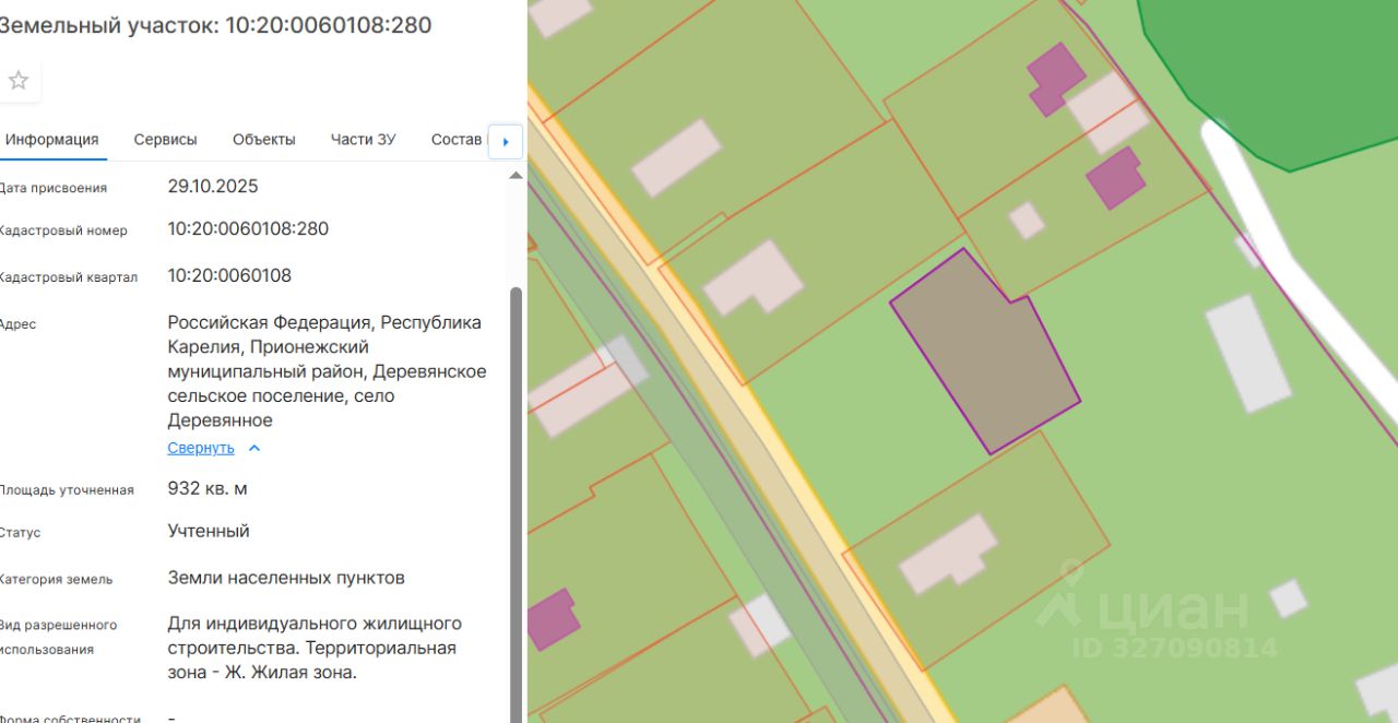 Право заключения договора аренды земельного участка из земель населенных пунктов, имеющего кадастровый номер 10:20:0060108:280, площадью 932 кв.м, местоположение: Российская Федерация, Республика Карелия, Прионежский муниципальный район, Деревянское сельское поселение, село Деревянное, вид разрешенного использования Для индивидуального жилищного строительства.