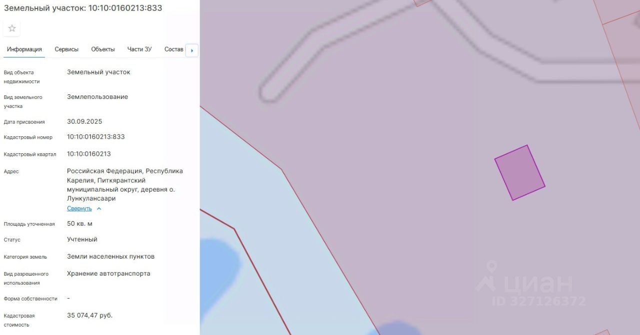 Площадь 50 кв.м, местоположение: Российская Федерация, Республика Карелия, Питкярантский муниципальный округ, деревня о. Лункулансаари, вид разрешенного использования - Хранение автотранспорта. Территориальная зона - ЖИ. Зона застройки индивидуальными жилыми домами