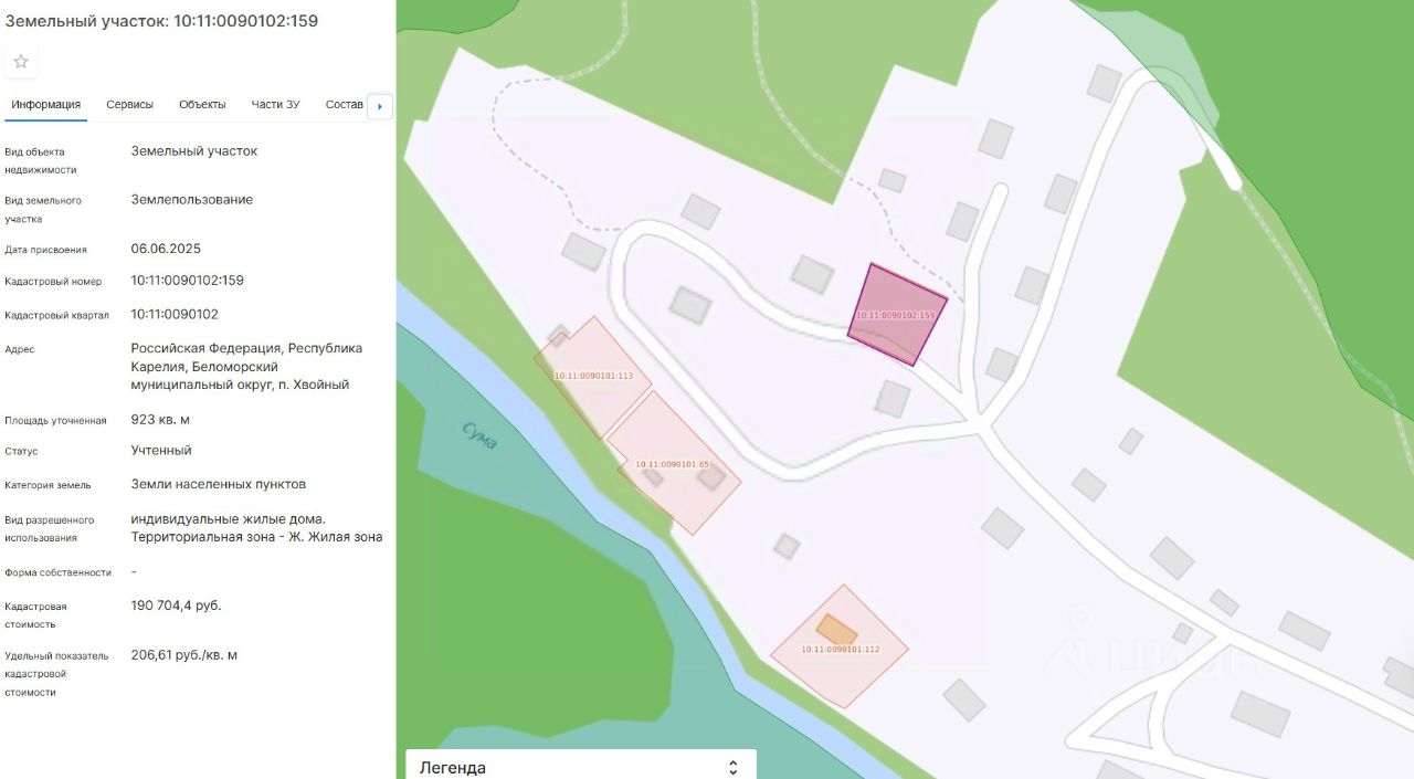 Право заключения договора аренды земельного участка из земель населенных пунктов, имеющего кадастровый номер 10:11:0090102:159, площадью 923 кв. м, местоположение: Российская Федерация, Республика Карелия, Беломорский муниципальный округ, п. Хвойный, вид разрешенного использования "Для индивидуального жилищного строительства", территориальная зона "Зона застройки индивидуальными жилыми домами (Ж)".