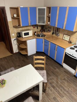 Так же можно комфортно разместится на хорошем диване на кухне . Кухня и комната изолированы друг от друга и у каждой есть двери .