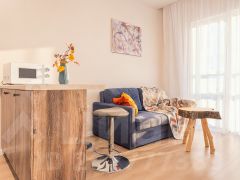 Внутри вы найдете все необходимое для комфортного проживания. Новая техника, включая стиральную машину, электрическую плиту, холодильник и микроволновую печь, позволят вам чувствовать себя как дома. Кроме того, квартира оформлена в эксклюзивном стиле с авторским декором, создавая уютную и стильную атмосферу.