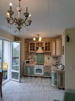 В квартире отдельная спальня с двухспальной кроватью и ортопедическим матрасом и большая кухня-гостиная с раздвижным диваном, который превращаемся в комфортную двухспальную кровать. В гостиной и спальне установлены телевизоры и Wi-fi. В квартире есть всё для комфортного проживания 4-х человек. Кухонная зона оснащена всем необходимым Электра. плита, духовка, микроволновка, посудомоечная машина, большой холодильник, чайник. В квартире есть стиральная машина, фен, утюг.