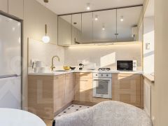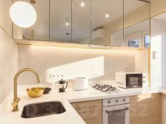 Кухня со всем необходимым (холодильник, посудомойка, варочная панель, микроволновая печь, чайник, тостер,а так же посуда и приборы)