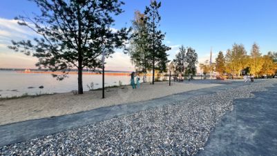 набережная нашего ЖК оснащена освещёнными дорожками для прогулок , свой песчаный пляж, аква станция с Сапбордами в прокат, спортивные площадки.