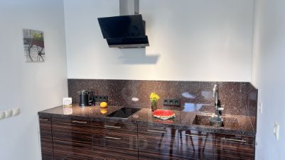 Холодильник, посудомоечная машина, микроволновая печь, варочная поверхность , утюг с гладильной доской, фен, сушилка для белья , стиральная машина автомат.