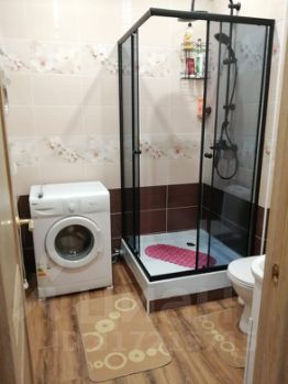 Санузел совмещен, установлена душевая кабина. Имеется фен, утюг, гладильная доска,сушилка,пылесос.
