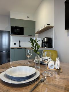 Кухня полностью укомплектована необходимой посудой, что позволит вам готовить любимые блюда. Обеденный стол с мягкими стульями станет отличным местом для трапезы или вечерних посиделок.