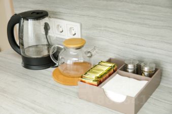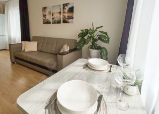 * Кухня укомплектована всем необходимым: варочная панель, СВЧ-печь, чайник, холодильник, полный набор посуды.