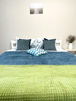 4 спальных мест: двуспальная кровать, диван-кровать. Имеется вся необходимая посуда и техника: