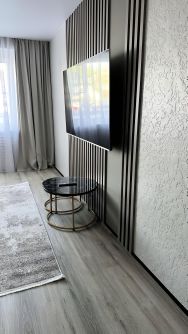 Полностью оборудованная кухня: В нашей квартире есть все необходимое для приготовления пищи - сенсорная плита, духовка, микроволновая печь, наборы посуды, удобные кухонные принадлежности, а также холодильник и посудомоечная машина. Готовьте любимые блюда и наслаждайтесь семейными ужинами в уютной обстановке.