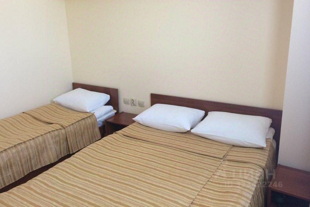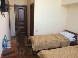 В номере: двухспальная и одна односпальная кровати, письменный стол, журнальный столик с двумя креслами, душ и санузел.