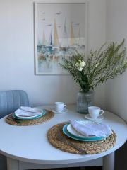 Квартира для 4 гостей. Спальные места: диван и двуспальная кровать. Для каждого гостя мы предоставляем по 3 белоснежных полотенца и чистейшее пастельное белье. В спальне оборудовано рабочее место. Большой угловой шкаф-гардеробная. В ванной для вас предметы личной гигиены.