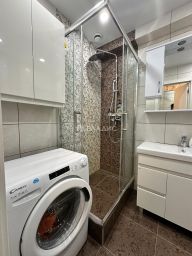 - В ванной комнате предусмотрен теплый пол, душевая кабина с системой тропического душа, стиральная машина;