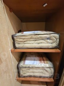 В квартире: раскладной диван- книжка 140200 односпальная кровать 90х200, раскладушка ( по запросу),шкаф-купе, телевизор, стиральная машина, утюг с гладильной доской, холодильник, электрическая плита, микроволновая печь, чайник, фильтр для воды, фен, посуда, постельное белье, одеяла, полотенца, предметы гигиены.