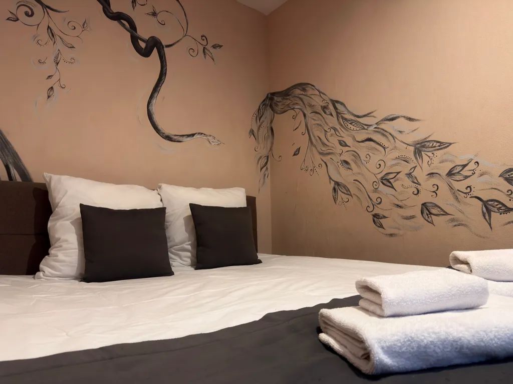 Апартаменты оснащены мини-кухней, где есть электрочайник, посуда, микроволновка, холодильник, электроплитка. В ванной комнате теплые полы, стиральная машина, душ, туалет. В апартаментах есть ЖК - телевизор, бесплатный скоростной интернет через вай-фай. Есть утюг, принадлежности для уборки.