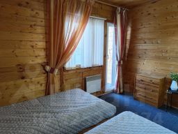 Номер на первом этаже, с собственным выходом на террасу с видом на лес и озеро, состоит из одной комнаты и кухни- студии. Имеются три односпальных кровати, в качестве дополнительного места - диван двуспальный в кухне-гостиной. Есть все удобства для комфортного проживания. Предоставляются гигиенические принадлежности (шампунь, гель для душа, мыло), полотенца.