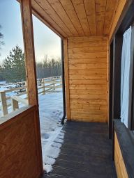 Номер на первом этаже, подходит для размещения до 7 гостей, с собственным выходом на террасу с видом на лес и озеро, состоит из трех комнат и кухни- студии. 1 комната —двуспальная кровать. 2 комната - три односпальных кровати, 3 комната - 1 двухъярусная кровать. Диван двуспальный, в кухне-гостиной дополнительные места. Предоставляются все удобства для комфортного проживания, гигиенические принадлежности (шампунь, гель для душа, мыло), полотенца.