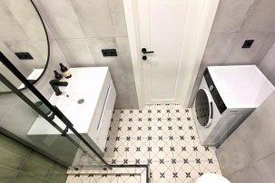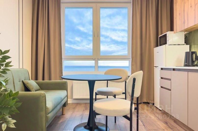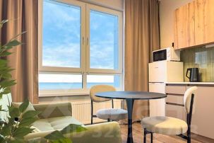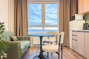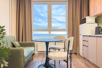 Новая однокомнатная квартира в новостройке с видом на озеро.