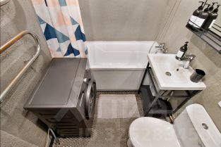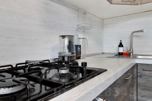 - Вся необходимая бытовая техника: посудомоечная машина, плита, микроволновка, холодильник, стиральная машина, вытяжка.