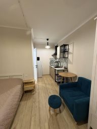 Несмотря на небольшую площадь (всего 22 м.кв.), студия максимально полно и компактно оборудована всем необходимым для комфортного отдыха: