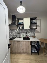 Уютная и светлая студия для отдыха с видом на гору и лесной массив готова принять гостей по системе 2+1 (2 человека могут расположиться на удобной двуспальной кровати (1400*2000) + 1 дополнительное место в виде кресла-кровати со спальным местом 600*2000. Идеально подойдет для семьи с детьми.