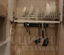 Комната полностью мебелизирована: есть вместительный шкаф-купе, одна дверь зеркальная; навесной шкаф-сушилка над раковиной (холодная и горячая вода); навесной шкаф с посудой для приготовления и приёма пищи; стол и раскладной стул; раскладной диван.