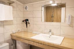 В номере на выбор одна двуспальная кровать или две односпальных кровати, два раскладных кресла, телевизор, холодильник, чайник, душ и туалет.