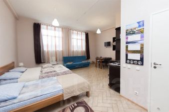 Номер 36 м.кв. Кухня в номере. Одна большая кровать (1800*2000) + 2 кровати (900*2000), микроволновая печь, мини-кухня, телевизор, туалет и душевая в номере.