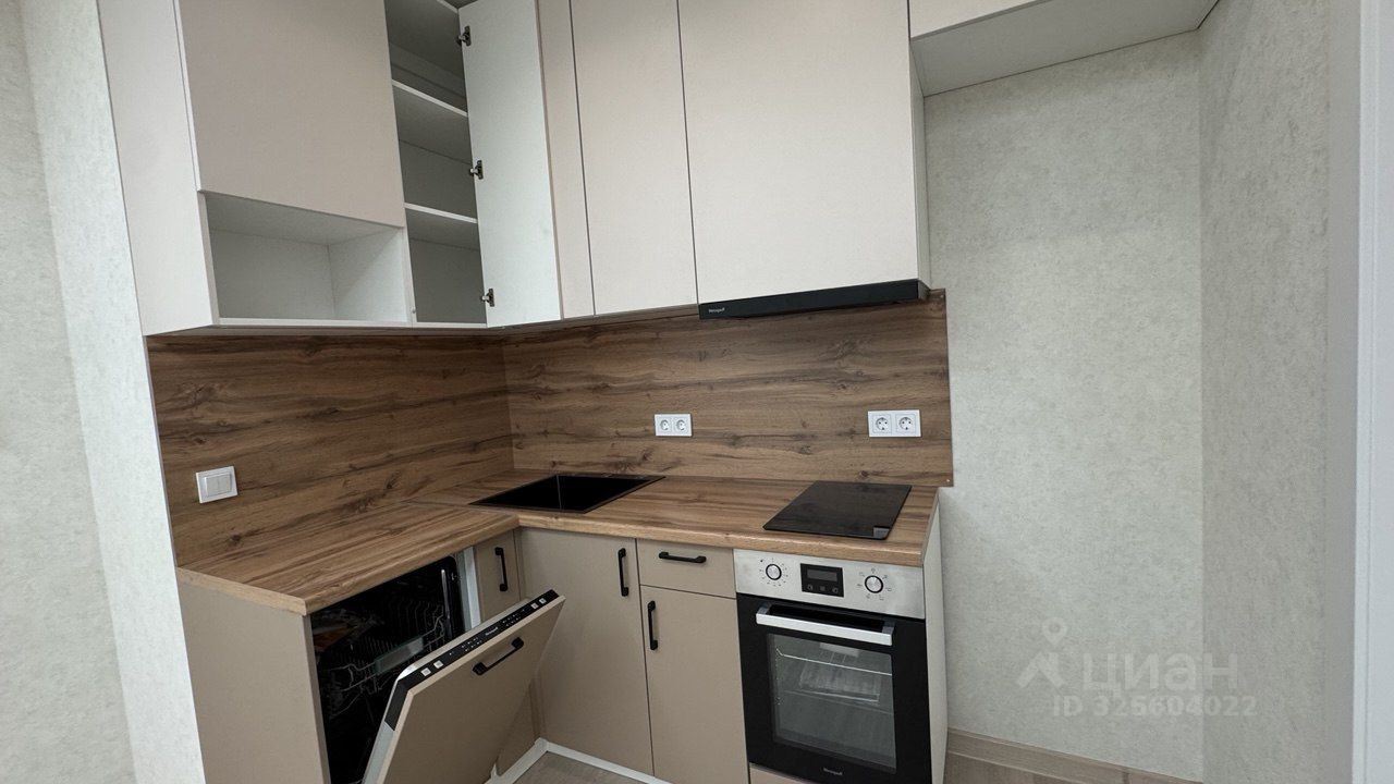 встроенная кухня: посудомоечная машина, духовой шкаф, варочная поверхность.