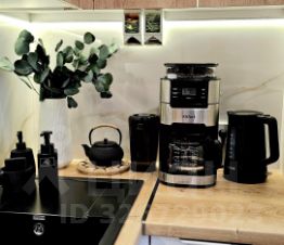 Кофемашина с зерновым кофе. Установлен фильтр Аквафор для питьевой воды.