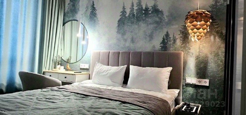 Двуспальная кровать в спальне и диван в гостиной, который раскладывается в полноценную двуспальную кровать.