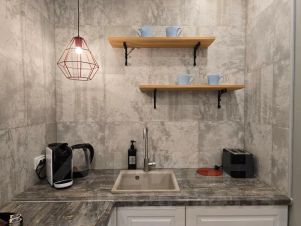 - Smart TV, -современная встроенная бытовая техника, -холодильник, -стиральная -посудомоечная машина. -микроволновая печь. -чайник -капсульная кофемашина -сушилка для белья -гладильная доска. -утюг, фен, посуда, столовые приборы, средства для стирки и посудомоечной машины