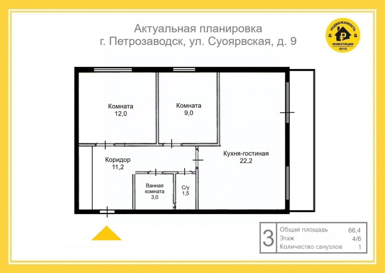 — Общая площадь: 66,4 кв.м. (площадь без лоджии: 59,2 кв.м.)