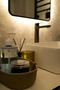 - Душ с термостатом, гигиенический душ, стиральная машинка, фен, средства для душа и стирки