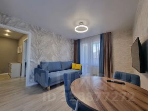 В гостиной двухместный раскладной диван, смарт тв, обеденная группа, кухонная зона со всей необходимой бытовой техникой. Духовки нет.