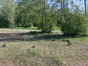 Пляж, можно загорать, прогуливаться и кормить уточек;