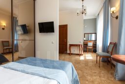 В номере: телефон, телевизор, холодильник, кондиционер, электрический чайник, чайный набор, приветственная вода, полутороспальная кровать, фен, Wi-Fi, сейф, санузел с душем, халат, тапочки