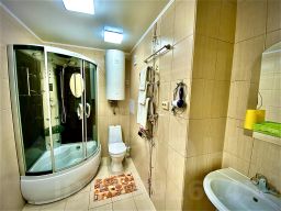 Две комнаты (евроремонт), большая двуспальная кровать, диван, рабочий стол, ТВ 9 каналов, холодильник, чайник, набор посуды, ванная комната: ванная, туалет, фен.