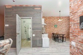 Лофт апартаменты находятся на первой линии Онежского озера и городской набережной, несомненным преимуществом является отдельный вход со двора здания, есть платный охраняемый подземный и бесплатный наземный паркинг напротив дверей номера, игровая детская площадка. Отличное место отдыха, пеших прогулок и даже рыбалки с берега.