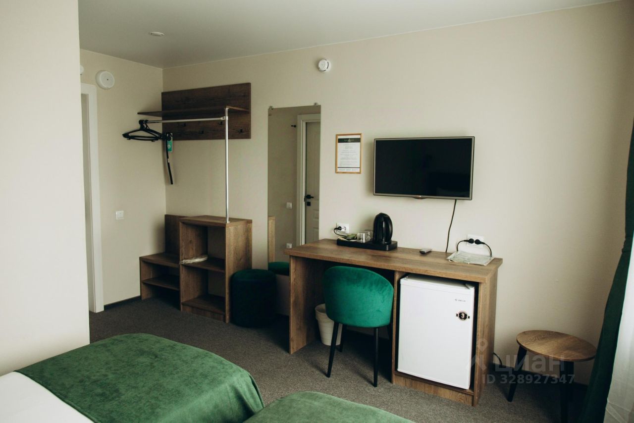 В номере на выбор одна двухспальная кровать или две односпальные, телевизор, холодильник, чайник, душ и туалет.