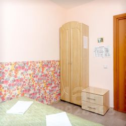 Двухместный номер с одной кроватью 160*200 см, в номере есть телевизор и интернет. Удобства и общая кухня располагаются на этаже.