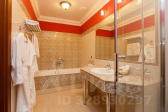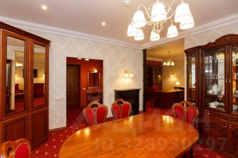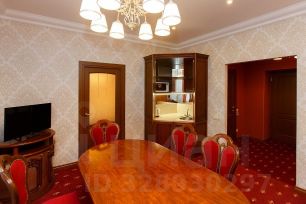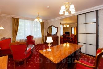 Трехкомнатный номер, состоящий из гостиной, кабинета и спальни. В номере: телефон, телевизоры, холодильник, сейф, кондиционер, двуспальная кровать, электро-камин, мини-кухня, микроволновая печь, электрический чайник, чай, сахар, бутилированная вода, санузел с ванной / сауной, фен, халаты, тапочки, гостевой санузел, Wi-Fi