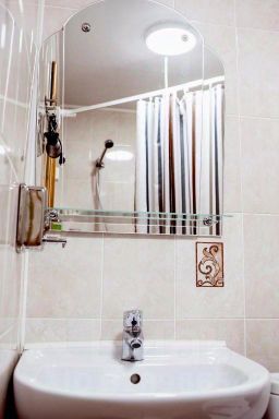 В номере 2 комнаты. В спальне располагаются 3 односпальные кровати, шкаф для одежды, столик. В гостиной двуспальный диван, стол, телевизор. Ванная комната оборудована душем.