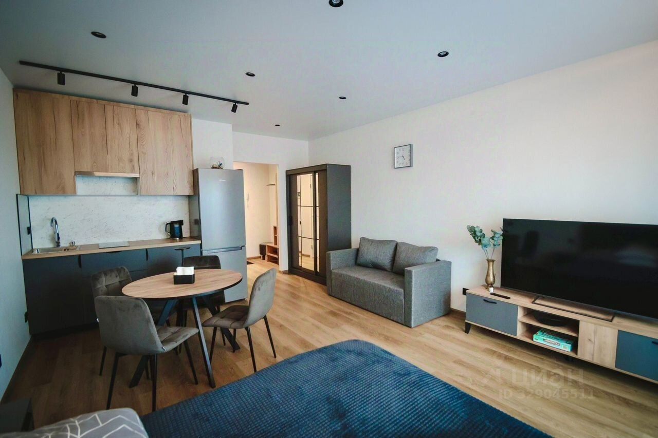 Cтудия с современным ремонтом в новом жилом комплексе. Удобное расположение — всего несколько минут до центра города и железнодорожного вокзала.