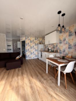НА ТЕРРИТОРИИ ЧАСТНОГО ДОМА расположен гостевой домик. В доме 40м² могут комфортно разместиться до 5х человек. В спальне двуспальная кровать (140х200 см), в кухне-гостиной два двухместных раскладных дивана. Современная оборудованная кухня, ванная комната, терраса. Вся мебель IКЕА.